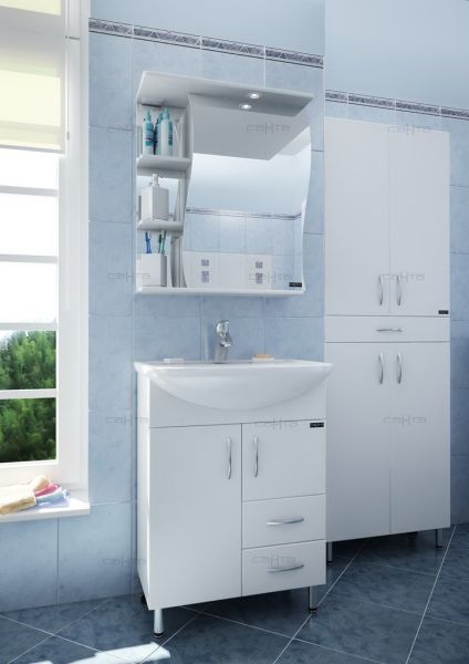 Тумба для комплекта СанТа подойдет как для просторной ванной комнаты, так и для небольшого помещения. Напольный способ установки производится непосредственно на пол, при этом конструкция максимально устойчива при серьезных физических нагрузках.В производстве используют только качественные влагостойкие материалы (ВЛДСП), в составе которых полностью отсутствуют опасные вещества. Серия Венера отличается превосходным дизайном с соблюдением всех ключевых элементов современного стиля. Основным цветом, в котором выполнена тумба под раковину СанТа является белый, гармонирующий с большинством интерьерных решений. Тумба под раковину предусматривает удобную и вместительную систему хранения, состоящую из полок и дверей.Страной бренда СанТа является Россия, все товары производятся с выполнением соответствующих стандартов качества, что позволяет быть полностью уверенными в долговечности и надежности. Тумба для комплекта СанТа поможет сделать уютным любой интерьер и создать идеальную ванную комнату.