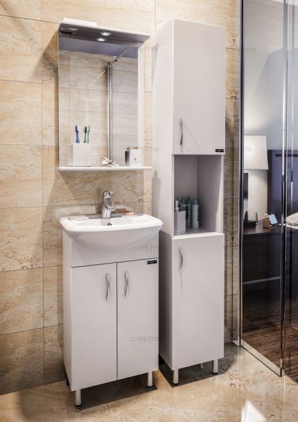 Тумба для комплекта СанТа подойдет как для просторной ванной комнаты, так и для небольшого помещения. Напольный способ установки производится непосредственно на пол, при этом конструкция максимально устойчива при серьезных физических нагрузках.В производстве используют только качественные влагостойкие материалы (ВЛДСП), в составе которых полностью отсутствуют опасные вещества. Серия Венера отличается превосходным дизайном с соблюдением всех ключевых элементов современного стиля. Основным цветом, в котором выполнена тумба под раковину СанТа является белый, гармонирующий с большинством интерьерных решений. Тумба под раковину предусматривает удобную и вместительную систему хранения, состоящую из полок и дверей.Страной бренда СанТа является Россия, все товары производятся с выполнением соответствующих стандартов качества, что позволяет быть полностью уверенными в долговечности и надежности. Тумба для комплекта СанТа поможет сделать уютным любой интерьер и создать идеальную ванную комнату.