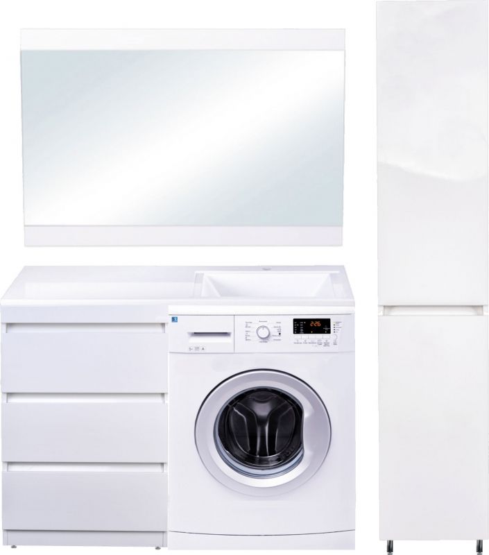 Тумба под раковину Style Line Даллас 120 СС-00002272 (3 ящ.) Люкс белая, PLUS под стиральную машинку