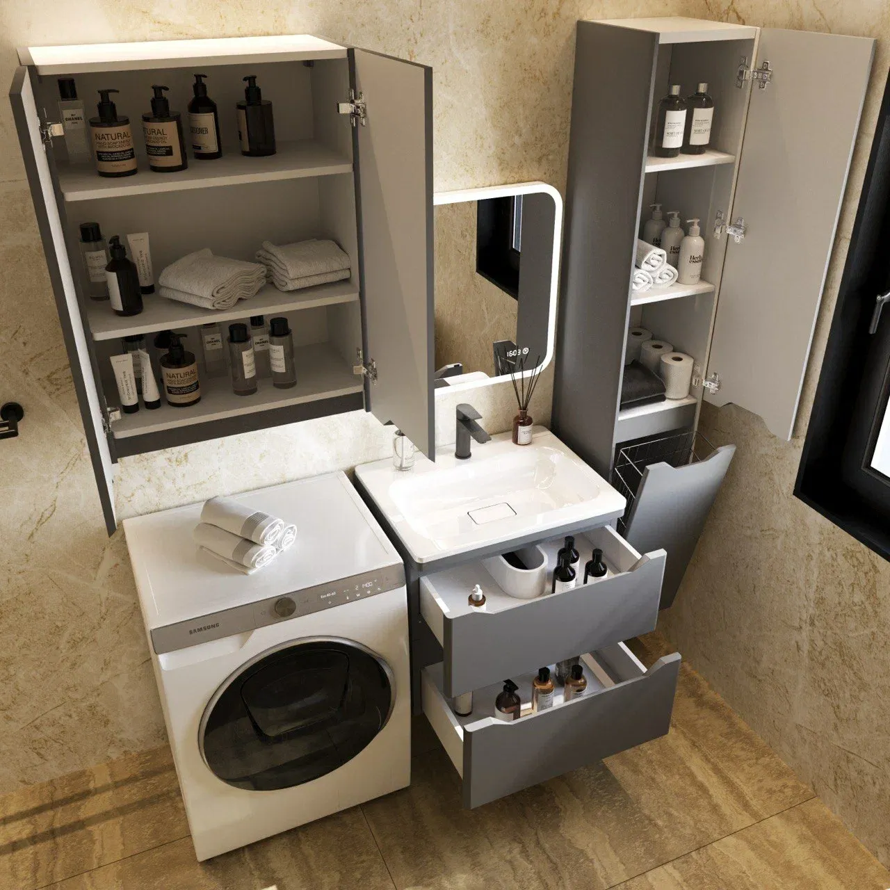 Тумба под раковину Style Line Марелла 60 Люкс Plus СС-00002406 серый матовый