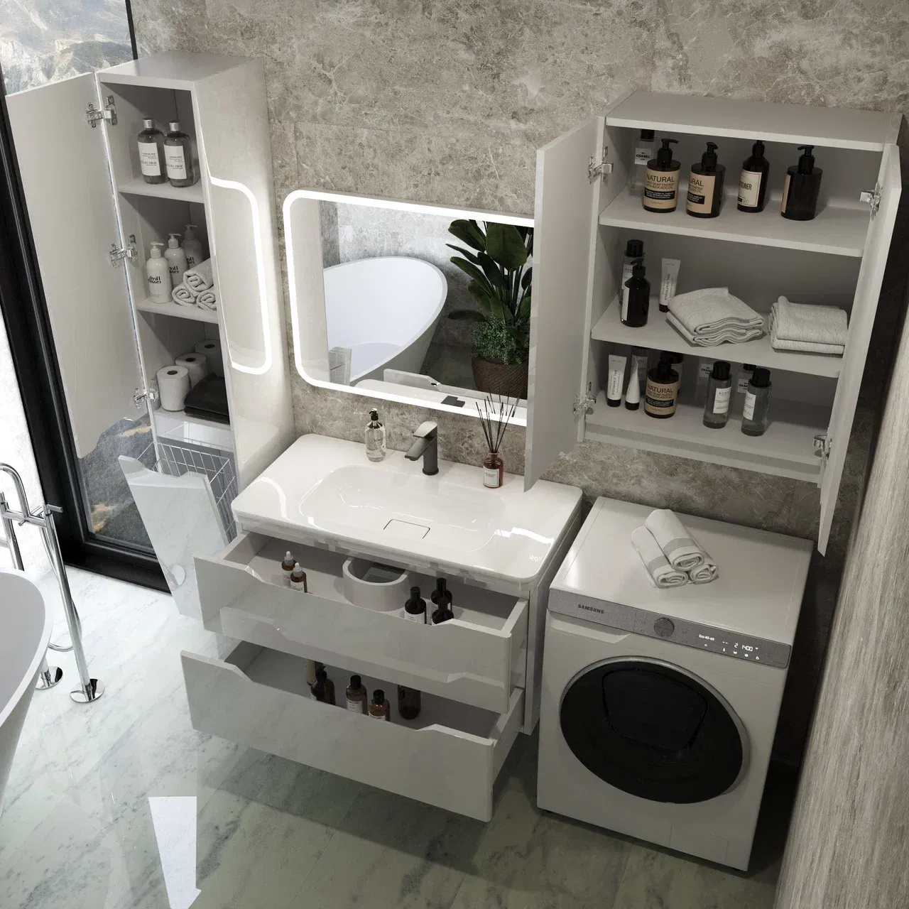 Тумба под раковину Style Line Марелла 90 Люкс Plus СС-00002414 белый глянец