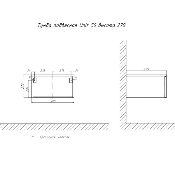 Тумба подвесная без столешницы Velvex Unit tp.UNI.50.1Y белый глянец, 50 см купить