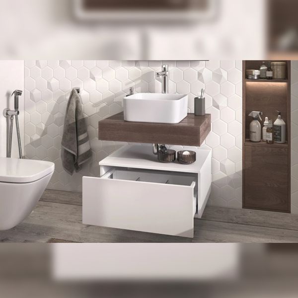 Тумба подвесная без столешницы Velvex Unit tp.UNI.50.1Y белый глянец, 50 см: 1 выдвижной ящик со стеклянными разделителями.