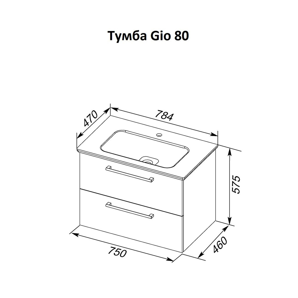 Тумба подвесная Dreja.Rus GIO 80 под умывальник Эйфория-80, белый глянец
