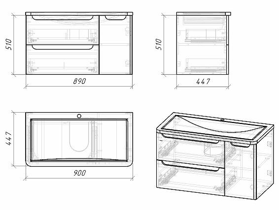 Габариты корпуса тумбы (ШхГхВ): 890х510х447 мм.