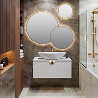Тумба под раковину в ванную RUNO Андорра (подвесная) – это изысканность и утончённая роскошь в интерьере. Рифленые фасады визуально «оживляют» и «приводят в движение» всю обстановку комнаты, сохраняя при этом умиротворение и покой. Цвета корпуса и фасада имеют идеальное классическое цветовое сочетание глянцевого и матового белого цвета, которые идеально впишутся в любой интерьер ванной комнаты. Тумба оснащена двумя распашными дверцами, дверцы укомплектованы петлями верхняя с доводчиком, нижняя без доводчика. К тумбе для ванной подойдут умывальники на столешницу: «OVALE 50» (50х36см) - идеальное решение для стильного интерьера ванной, создан для минималистичных интерьеров и подойдёт для санузлов в стиле лофт, минимализм и хай-тек. Строгая овальная геометрически правильная форма раковины, усиливает идею лаконичности в дизайне, устанавливается на столешницу, накладным методом. «PALLA D41» (диаметр 41см) - идеальное решение для стильного интерьера ванной, создан для минималистичных интерьеров и подойдёт для санузлов в стиле лофт, минимализм и хай-тек. Строгая круглая геометрически правильная форма раковины, усиливает идею лаконичности в дизайне, устанавливается на столешницу, накладным методом. «TRE 48» (48х37см) - идеальное решение для стильного интерьера ванной, создан для минималистичных интерьеров и подойдёт для санузлов в стиле лофт, минимализм и Хай-Тек. Строгая прямоугольная форма с округлыми углами усиливает идею лаконичности в дизайне, устанавливается на столешницу, накладным методом. «TERZO 60» (59х39см) - идеальное решение для стильного интерьера ванной, создан для минималистичных интерьеров и подойдёт для санузлов в стиле лофт, минимализм и хай-тек. Асимметричная раковина, которую можно установить любой стороной, дизайнерское решение для нестандартных интерьеров, усиливает идею лаконичности в дизайне, устанавливается на столешницу, накладным методом. И другие накладные раковины бренда RUNO.
