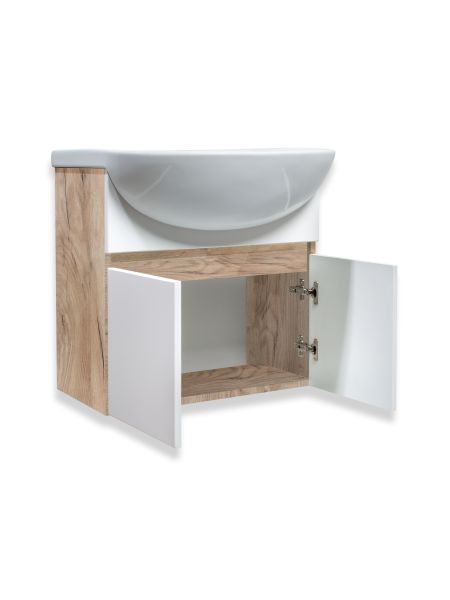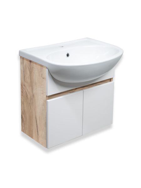 Тумба под раковину для ванной RUNO ЛАДА - модное и оригинальное решение для бюджетного оснащения ванной комнаты. Коллекция мебели ЛАДА выполнена в трёх цветах - классическом белом, в стильных и модных цветах - графит и крафтовый дуб . Тумба под раковину оснащена двумя распашными дверцами, каждая дверца укомплектована двумя петлями, верхняя с доводчиком, нижняя без доводчика. К тумбе подходит керамическая раковина "Уют" (500*420 мм). Раковина глубиной 18 см. Мебель для ванной RUNO - красота и практичность в мелочах!