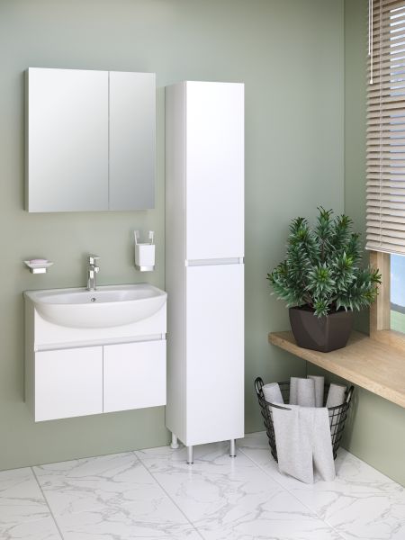 Тумба под раковину для ванной RUNO ЛАДА - модное и оригинальное решение для бюджетного оснащения ванной комнаты. Коллекция мебели ЛАДА выполнена в трёх цветах - классическом белом, в стильных и модных цветах - графит и крафтовый дуб . Тумба под раковину оснащена двумя распашными дверцами, каждая дверца укомплектована двумя петлями, верхняя с доводчиком, нижняя без доводчика. К тумбе подходит керамическая раковина "Уют" (610*470 мм). Раковина глубиной 21 см. Мебель для ванной RUNO - красота и практичность в мелочах!