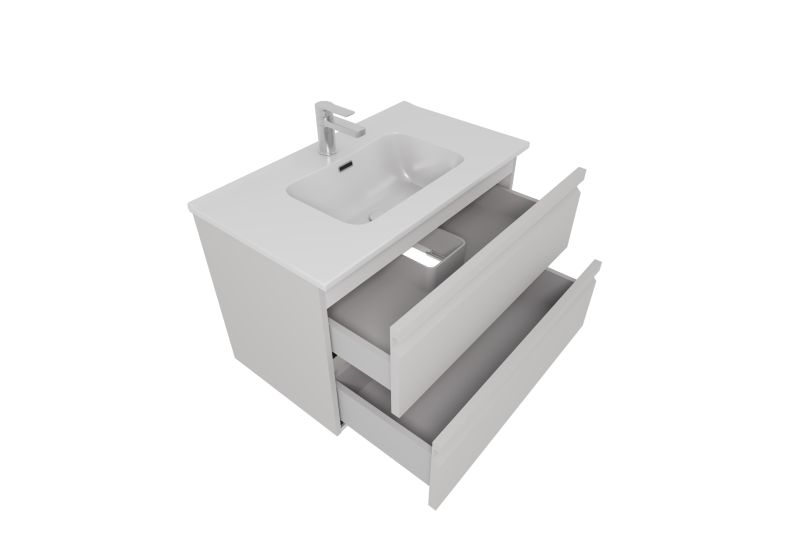 Мебельная раковина: Раковина из 100% санфарфора с идеальной гладкой поверхностью не только выглядит стильно, но и обеспечивает легкость в уходе. Несмотря на компактную глубину, раковины обладают достаточно вместительной чашей, предотвращающей разбрызгивание воды.