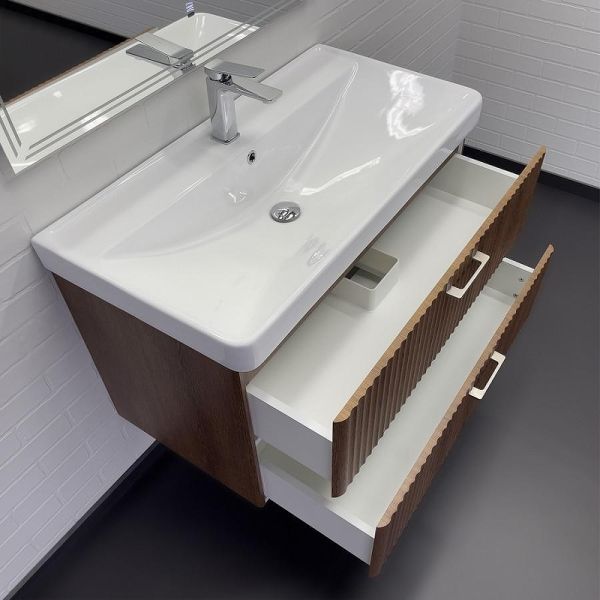 Тумба с раковиной Comforty Ангара 90 00-00021037 подвесная Дуб темно-коричневый купить