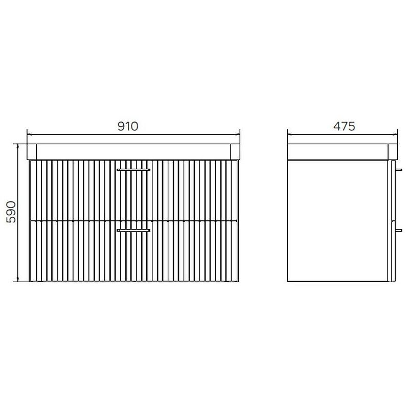 Габариты тумбы с раковиной (ШхВхД): 910х590х475 мм.