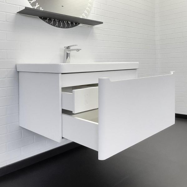 Тумба с раковиной Comforty Арзамас 80 00-00017884 подвесная Белая матоваяПодвесная тумба с одним большим выдвижным ящиком и внутренним ящиком для мелочей. Направляющие ящиков оборудованы системой плавного закрывания. Лицевая фурнитура на фасад отсутствует, для открытия ящика нужно потянуть верхний край фасада, на котором сделан вырез под естественный хват. Внутренний ящик оборудован push-to-open - открытие при нажатии. Тумба подготовлена для подключению коммуникаций снизу и сзади.Характеристики:Тумба:Цвет: белый матовый.