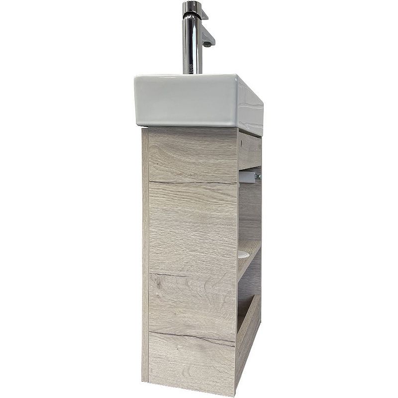 Тумба с раковиной Comforty Асти 40 00-00013798 подвесная Дуб дымчатыйКомпактная подвесная тумба-умывальник Comforty Асти для небольших санузлов. Фасад и корпус тумбы изготовлены из влагостойкого ДСП. В комплекте асимметричная раковина с отверстием под смеситель сбоку. Раковина глазурована со всех сторон, поэтому может быть установлена как в правом, так и в левом варианте.