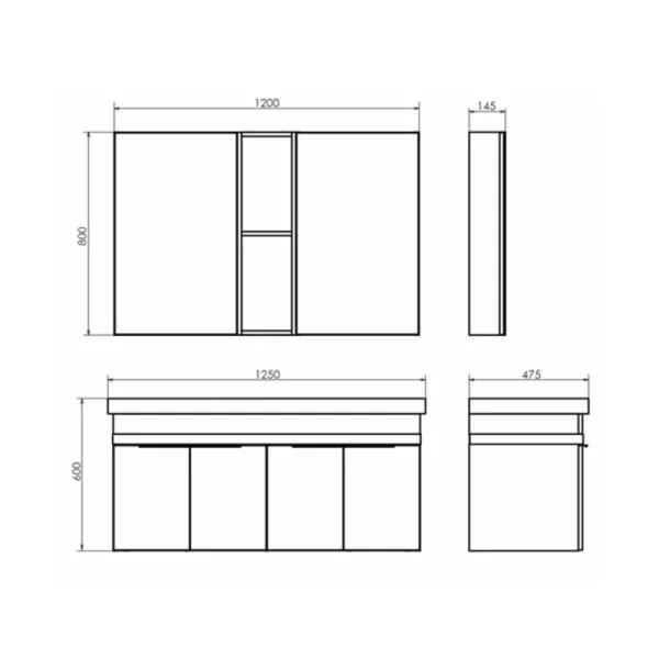 Габариты тумбы с раковиной (ШхВхД): 1250х600х475 мм.