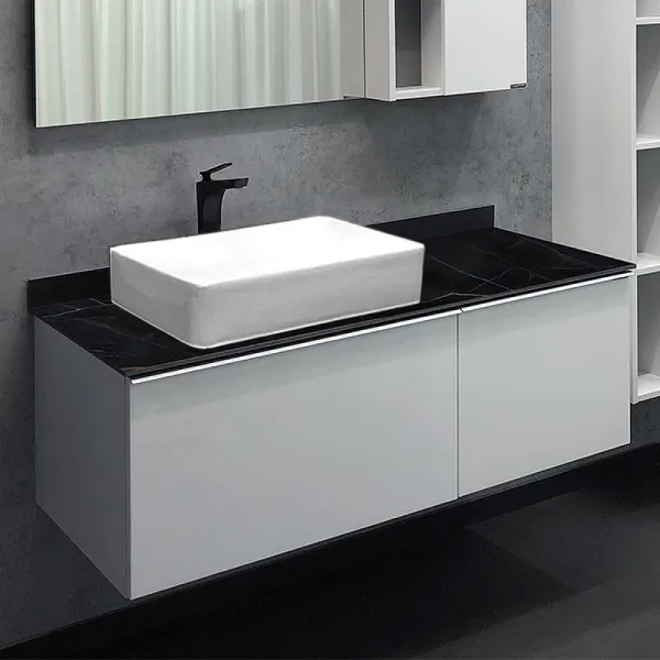Тумба с раковиной Comforty Милан 00-00014005 120 см белыйХарактеристики: Тумба: Цвет: белый глянцевый. Цвет столешницы: под мрамор Калакатта Блэк. Материал тумбы: влагостойкий ЛДСП, МДФ. Материал столешницы: керамогранит. Организация хранения: два ящика с системой плавного закрывания. За правым фасадом ящик оснащен системой push-to-open (открытие при нажатии). Тумба подготовлена для подключения водоснабжения снизу. Монтаж: подвесной. Раковина-чаша: Цвет: белый. Материал: санфарфор. Форма: прямоугольная. В комплекте поставки: тумба, столешница, раковина-чаша Comforty 78189, крепежный комплект