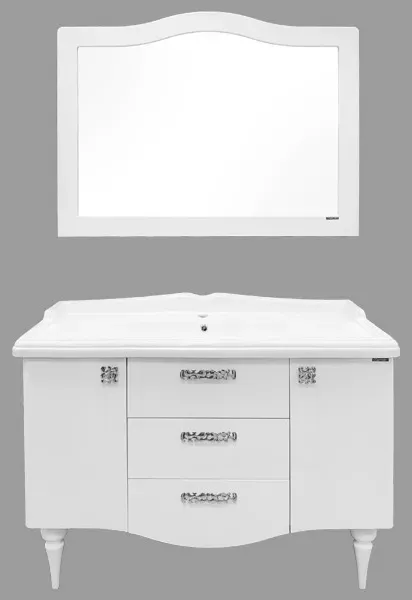 Тумба с раковиной Comforty Монако 00003132224 120 см белыйТумба-умывальник в неоклассическом стиле с двумя створками и двумя выдвижными ящиками. Створки оснащены петлями с плавным закрыванием. Фасады тумбы покрыты белой глянцевой эмалью. Тумба укомплектована широкой и глубокой раковиной в классическом стиле с бортиком по периметру.Тумба подготовлена для подключения водоснабжения снизу.
