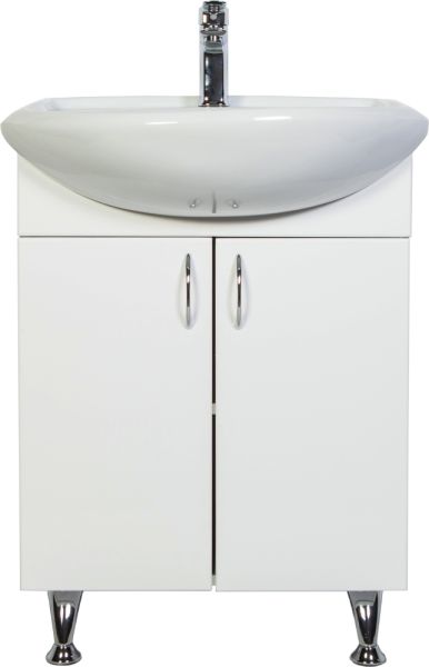Напольная тумба с раковиной. Дверки c механизмом доводчика, обеспечивающим плавное закрывание. Фасад МДФ в пленке, цвет белый глянец. Корпус ЛДСП - белый глянец. Раковина - фарфор. Фурнитура в цвете хром. В комплекте н-р ножек и внутренняя полочка. Зеркальный шкаф для комплекта (арт. LA-60TUW+RA) приобретается дополнительно.