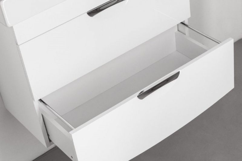 Тумба подвесная с двумя ящиками и стильными врезными ручками. Доводчики "Hettich" обеспечивают плавность и бесшумность хода, высокую надежность и прочность. Боковины изделий в пленке в цвет фасадов. Данная тумба предусматривает открытую подводку воды.Комплектация Люкс:Боковины изделий из МДФ в пленке ПВХ.