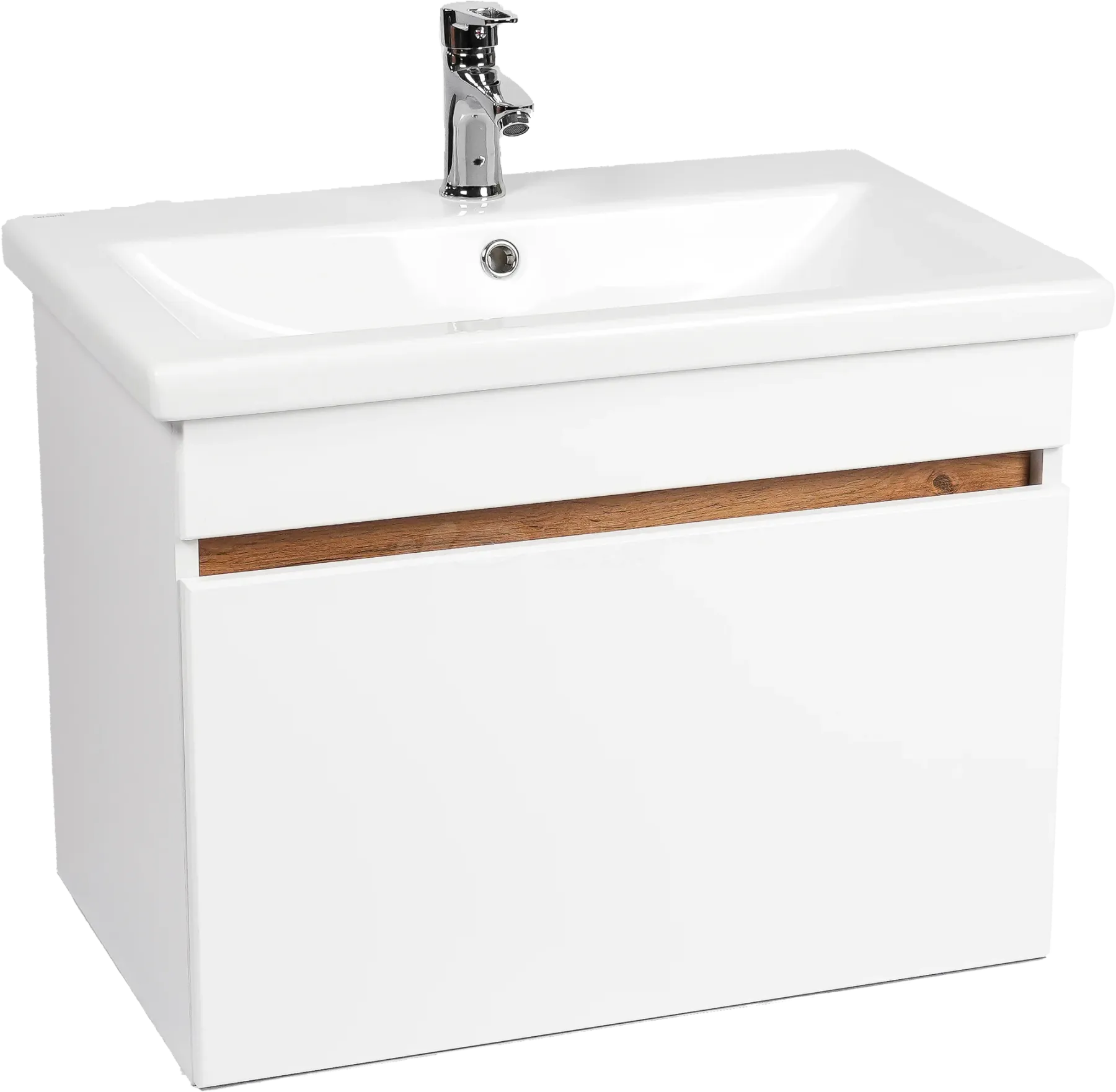 Тумба с раковиной VIANT Мальта 70 подвесная, белая, дуб вотан, 1 ящик купить