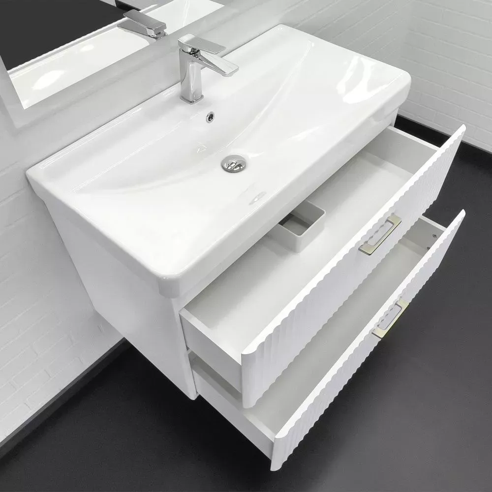 Тумба-умывальник Comforty Ангара-90П белый матовый c раковиной Comforty 4490 купить