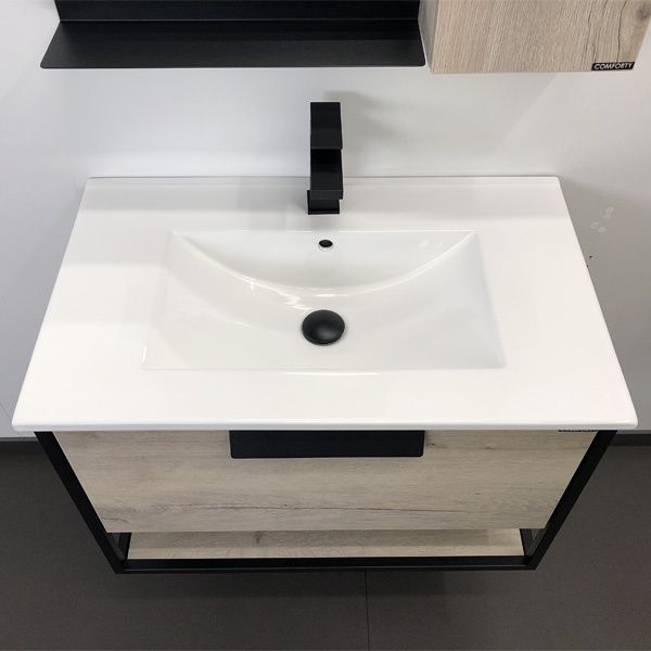 Раковина Comforty 75E, фарфор, прямоугольная, с отверстием под смеситель, белая