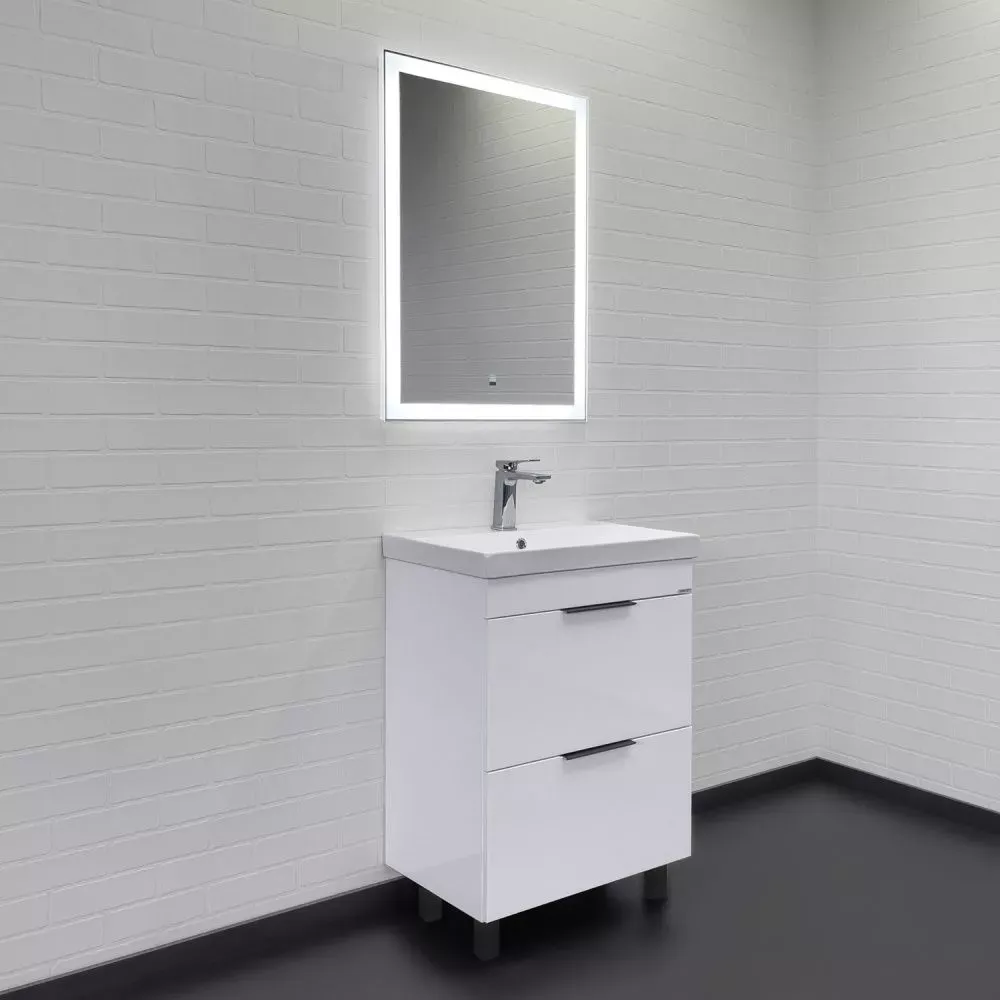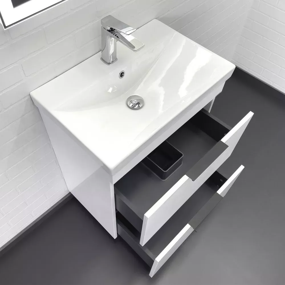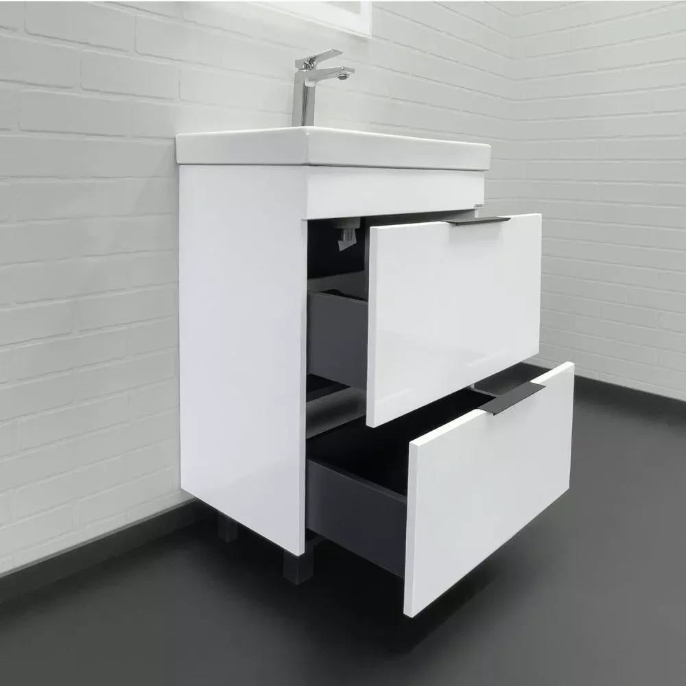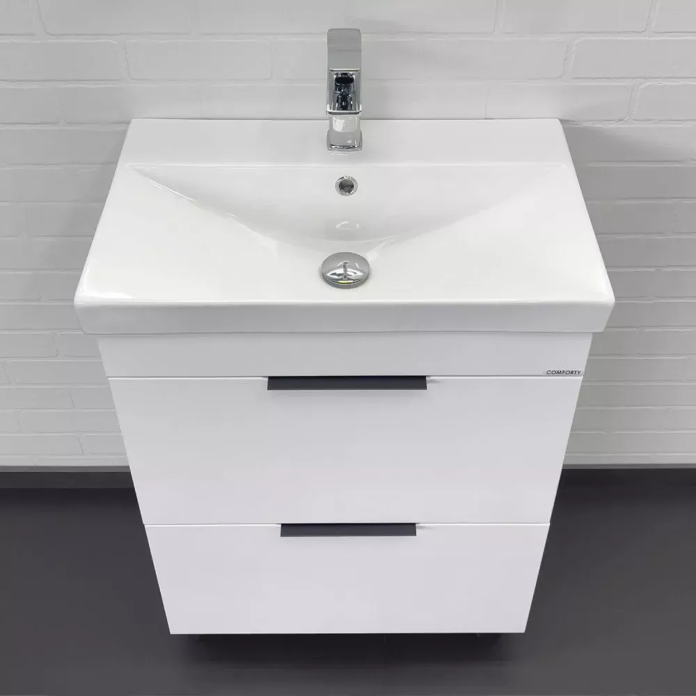 Тумба-умывальник Comforty Кама-60Н белый глянец с раковиной Comforty CF19696BX-60