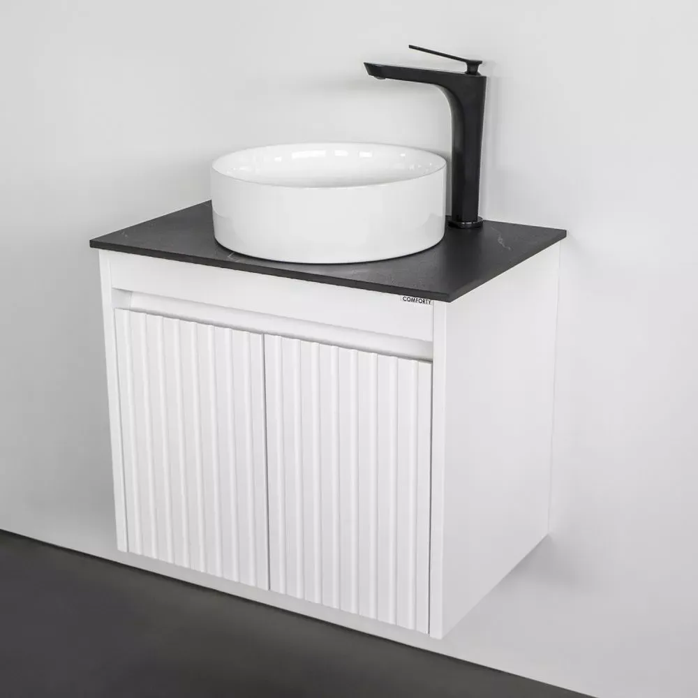 Тумба-умывальник Comforty Двина-60ПД белая матовая со столешницей мрамор Калакатта Блэк с раковиной 9111 купить