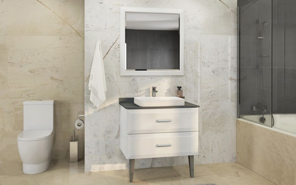 Тумба-умывальник Comforty Империя-80 белая с графитовой столешницей c раковиной Comforty 78189Тумба с раковиной