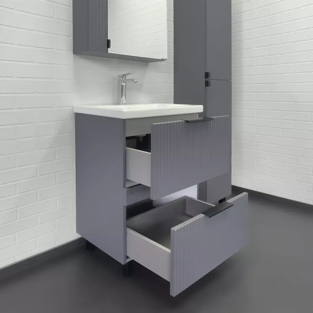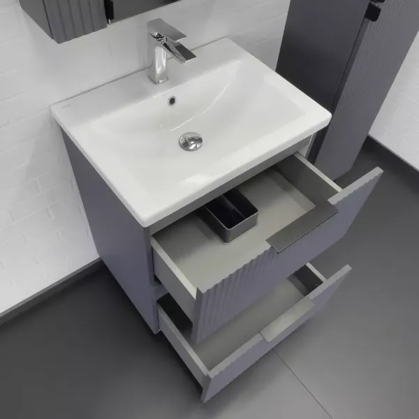 Тумба-умывальник Comforty Лима-60Н2 антрацит с раковиной Como 60