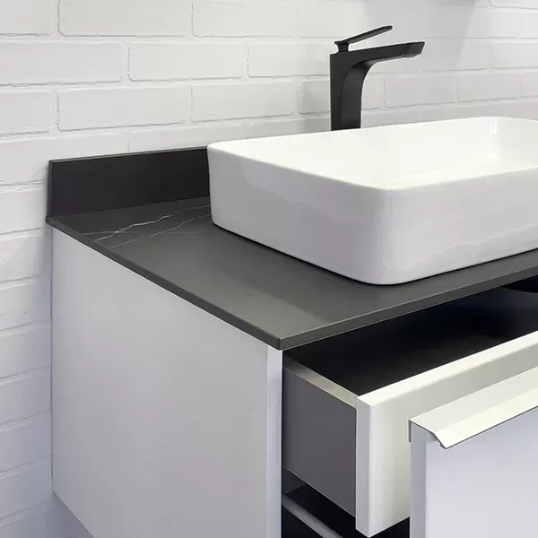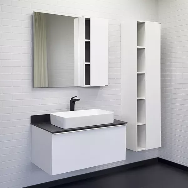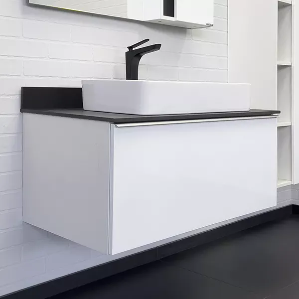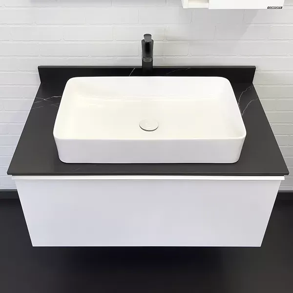 Тумба-умывальник Comforty Милан-90 белая со столешницей Калакатта Блэк с раковиной Comforty 78189 купить