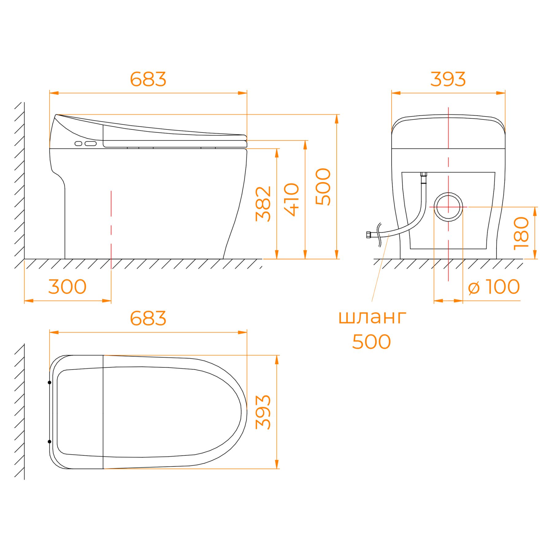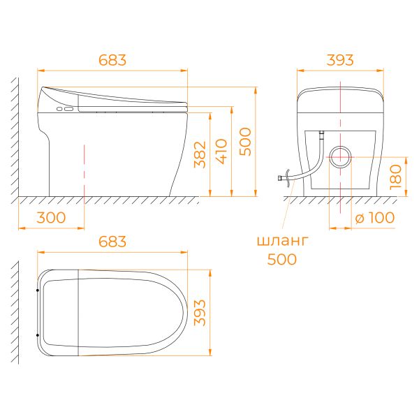 • Прилегание унитаза к стене: