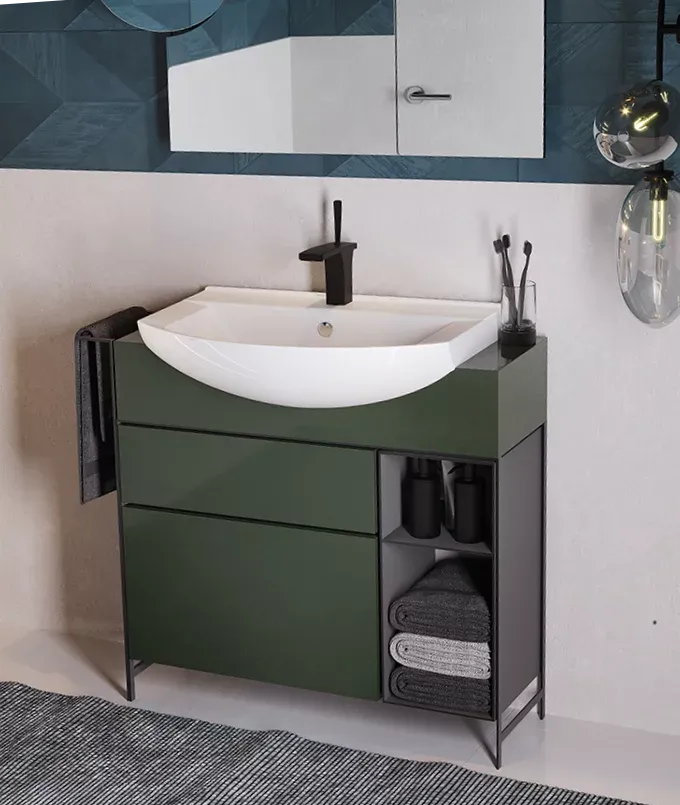 Коллекция Best сопровождает стилистику пространства ванной комнаты ясными геометрическими формами и точностью композиции. Округлая передняя часть мебельного умывальника выступает за пределы столешницы. Широкий выбор мебельных комплектов.