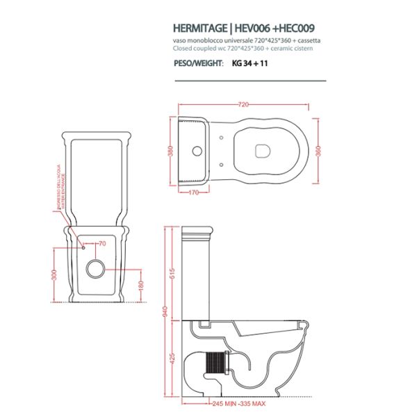 Унитаз Artceram HERMITAGE HEV006 03 00 nero черныйArtceram HERMITAGE унитаз моноблок пристенный 71*36см слив в стену с креплением, цвет черный