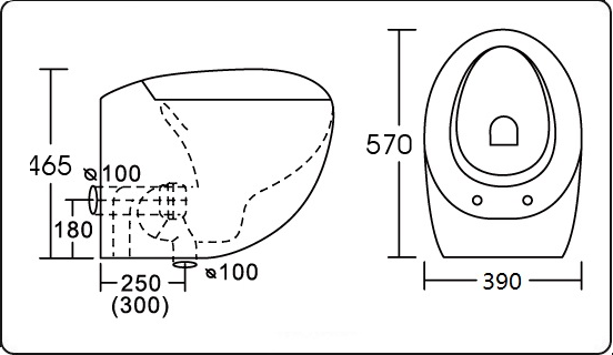 Режим смыва воды:определяется системой инсталляции
