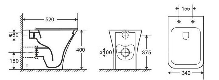 • Прилегание унитаза к стене: