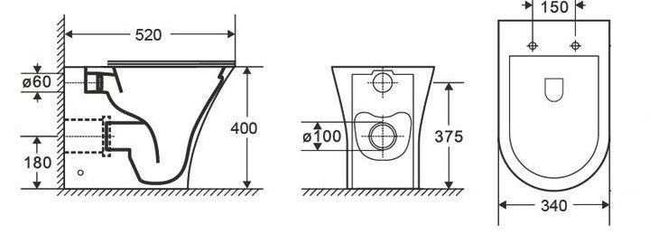 Режим смыва воды:определяется системой инсталляции