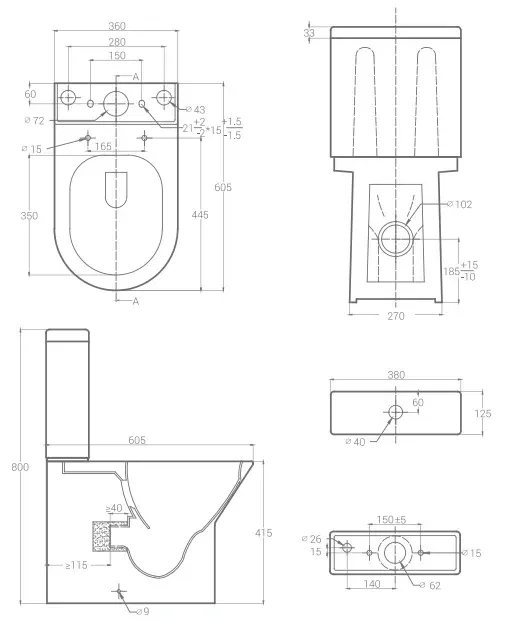 • Укороченный унитаз: