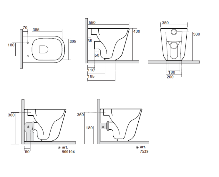 • Прилегание унитаза к стене: