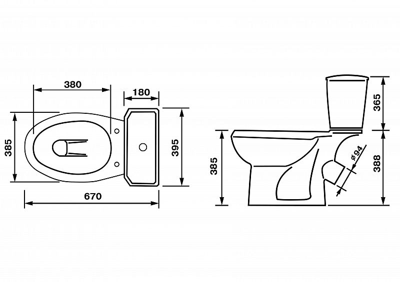 • Укороченный унитаз:
