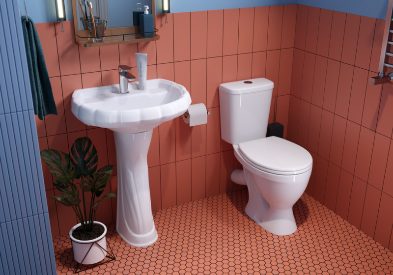 Минималистичная базовая модель унитаза-компакта ФОРМАТ не перегружена лишними деталями. Унитаз-компакт с функцией "антивсплеск" отличается прямым бачком, который позволяет придвинуть изделие вплотную к стене.