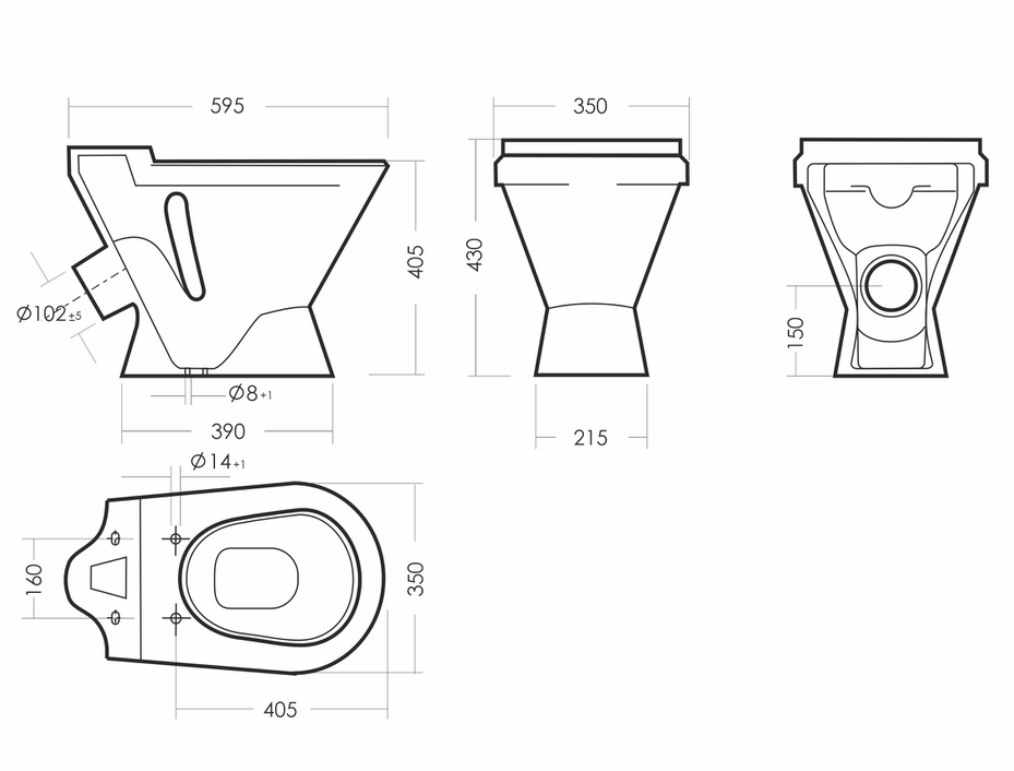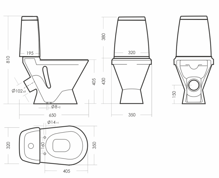 Размеры унитаза-компакта: 350 x 650 x 810