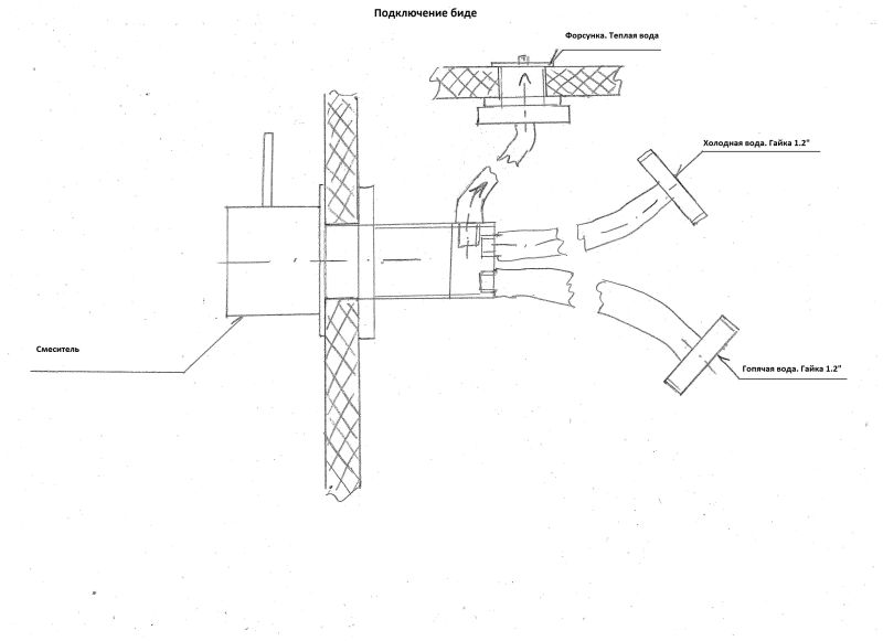 Подключение - горячей и холодной воды, к смесителю биде