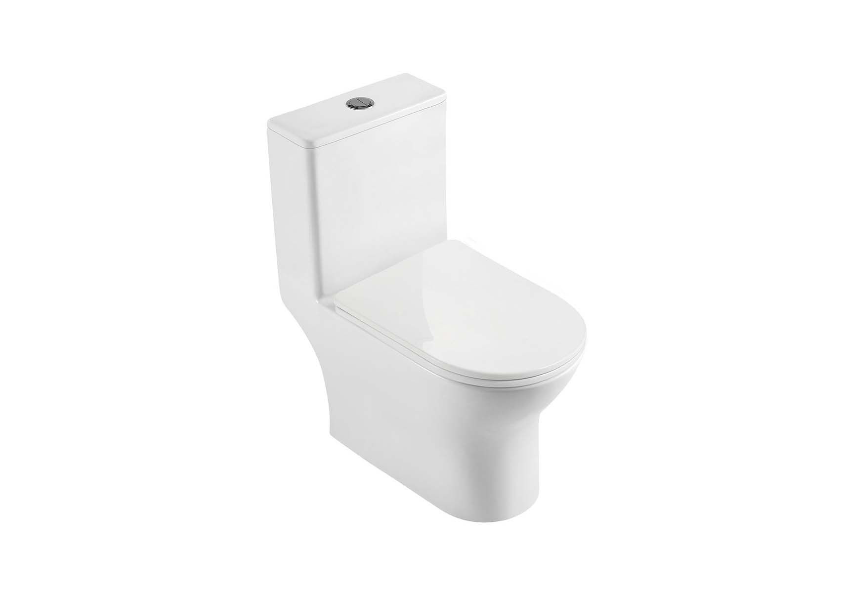 Современный и гигиеничный унитаз-моноблок безободковый с системой смыва Tornado и крышкой-сиденьем из дюропласта (Soft-Close) сочетает в себе эргономичный дизайн и инновационные технологии.