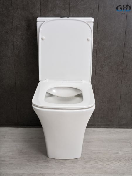 Серия Cuadrado — образец современного дизайна и испанского качества. Соответствие европейским стандартам гарантирует их долговечность. Напольный унитаз GiD Tn2184 с системой смыва от Geberit гарантирует отличную эффективность и низкий уровень шума. Модель выполнена в белом цвете из высококачественной мелкопористой керамики. Сиденье с микролифтом из дюропласта обеспечивает плавное и бесшумное закрытие. Благодаря антигрязевому покрытию и воронкообразной квадратной чаше унитаз обеспечивает высокий уровень гигиены и легкость ухода. Комплект: напольная чаша унитаза GiD Tn2184 с креплениями для скрытого монтажа; бачок с арматурой Geberit; сиденье с креплениями.