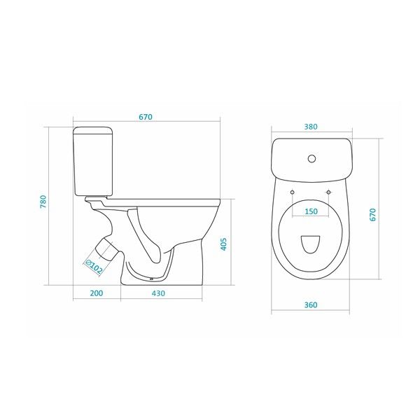 Унитаз напольный Santek - Бореаль с сиденьем дюропласт, антивсплеск с диагональным выпуском «Антивсплеск», с двухрежимной арматурой Siamp.