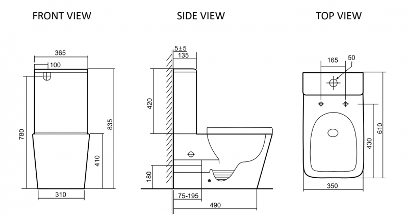 • Прилегание унитаза к стене: