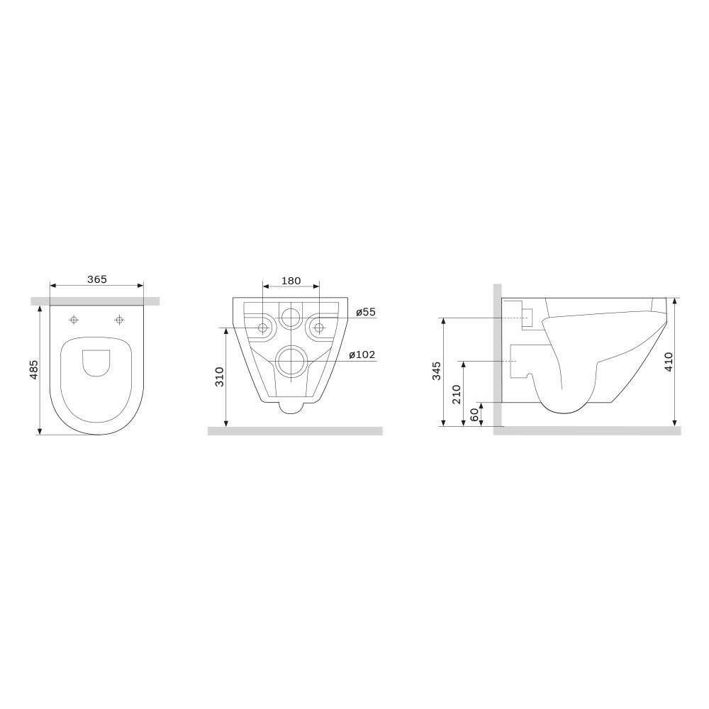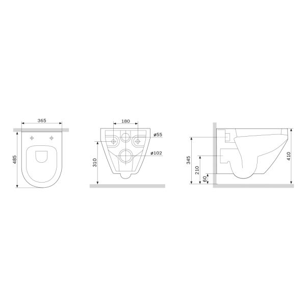 • Прилегание унитаза к стене: