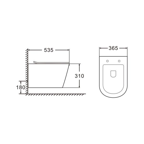• Прилегание унитаза к стене: