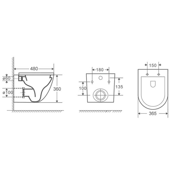• Прилегание унитаза к стене: