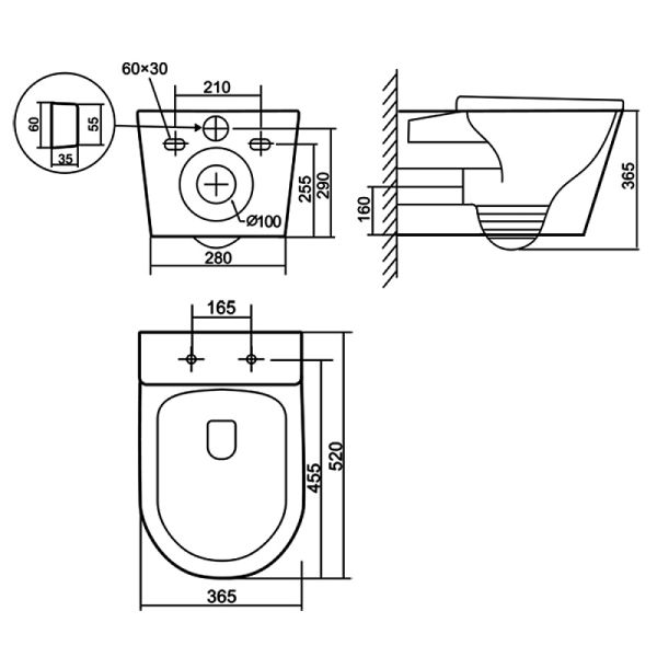 • Габариты унитаза (365х485х365 мм) делают его идеальным выбором даже для небольших ванных комнат, не жертвуя при этом пространством и комфортом.